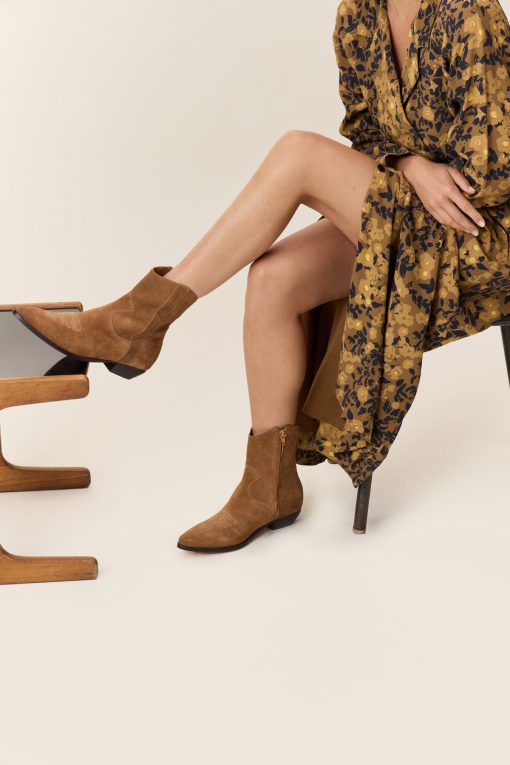 Les bottines West PLN revisitent le style western avec une attention portée aux détails. Le bout pointu et le talon biseauté sculptent une silhouette contemporaine, tandis que les surpiqûres et les empiècements latéraux mettent en avant le savoir-faire de la marque. La tige montante assure une allure affirmée, à mixer sans effort avec un jean brut ou une jupe midi pour twister votre vestiaire urbain.