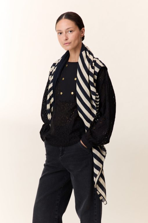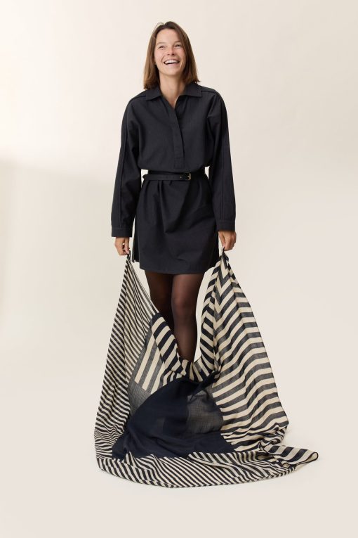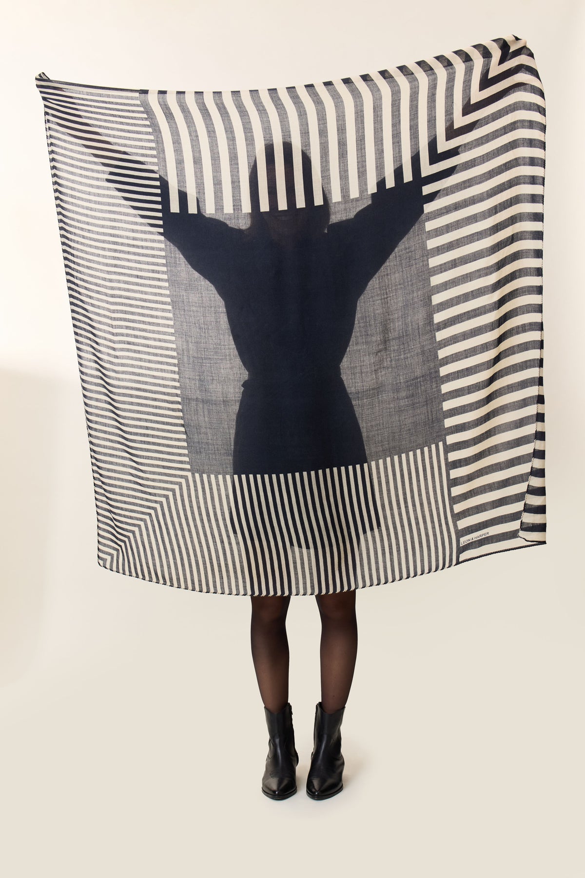 L’écharpe Emile Lines s’affirme par un motif à rayures graphiques, travaillées dans des largeurs et orientations contrastées. Son tombé ample offre une véritable liberté de mouvement. La laine douce assure confort et chaleur, tandis que les finitions précises des bords traduisent une exigence de qualité. Cette pièce donne du relief à la silhouette et s’invite facilement sur un look minimaliste ou sur un jean et un pull, pour une allure décontractée.