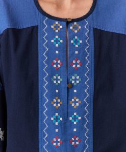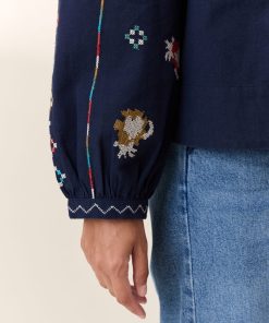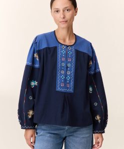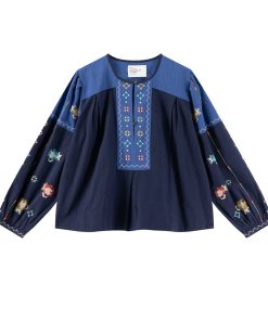 La blouse Chuki Brd est pensée pour celles qui aiment affirmer leur style grâce à des détails signés Leon & Harper. Son col rond et sa patte de boutonnage partielle ponctuée de broderies géométriques apportent relief et caractère à la silhouette. Les manches longues, structurées par des broderies placées et des poignets élastiqués froncés, créent un jeu de volume subtil. La coupe ample assure un tombé fluide et une liberté de mouvement signature de la marque. 100% coton, cette blouse apporte une note créative à une allure relax ou citadine. À marier simplement avec un jean droit pour un look quotidien.