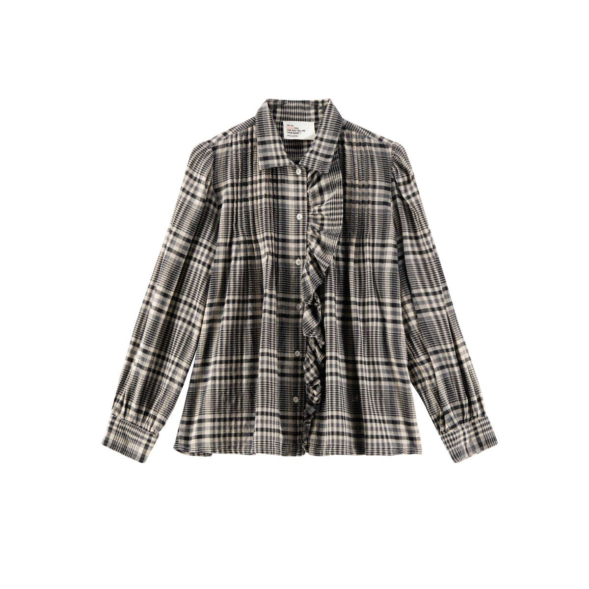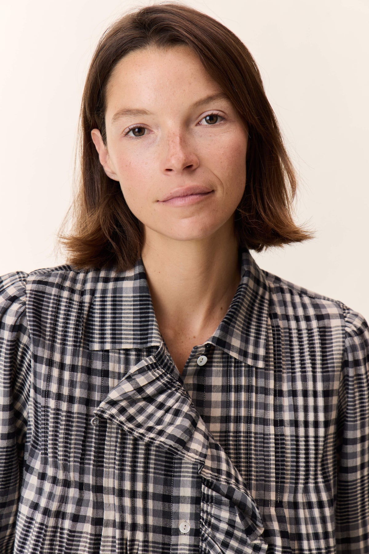 La chemise Claus Crx Leon & Harper propose une coupe fluide ponctuée d’un motif à carreaux classique. Volant vertical sur le devant et fronces aux épaules rythment la silhouette, tandis que les manches longues s’achèvent sur des poignets boutonnés pour une finition visuelle nette. L’ensemble conjugue esprit cool et allure structurée, parfait pour jouer les associations entre décontraction et allure affirmée. À porter avec un jean droit ou un pantalon près du corps.