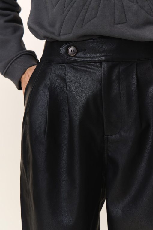 Le pantalon Penelope PL revisite l’allure large avec une taille haute qui souligne la silhouette, fidèle à l’esprit Leon & Harper. Les pinces sur le devant lui donnent du volume et un tombé maîtrisé, tandis que la finition enduite apporte une dimension actuelle. Fermeture par bouton discret et braguette zippée, poches latérales pratiques, dos agrémenté de poches à rabat boutonnées, chaque détail a été pensé pour affirmer le style. Votre allié parfait avec une maille ajustée ou une chemise près du corps.