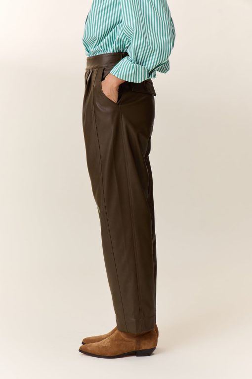 Le pantalon Penelope PL revisite l’allure large avec une taille haute qui souligne la silhouette, fidèle à l’esprit Leon & Harper. Les pinces sur le devant lui donnent du volume et un tombé maîtrisé, tandis que la finition enduite apporte une dimension actuelle. Fermeture par bouton discret et braguette zippée, poches latérales pratiques, dos agrémenté de poches à rabat boutonnées, chaque détail a été pensé pour affirmer le style. Votre allié parfait avec une maille ajustée ou une chemise près du corps.