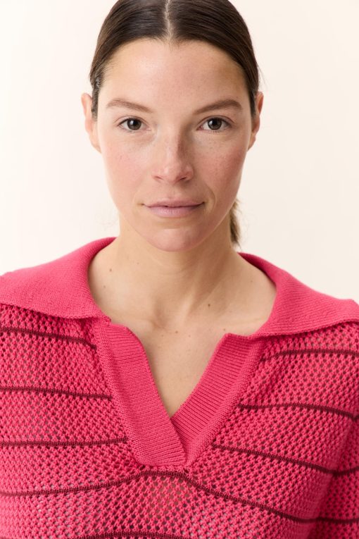 Cette saison, le polo Make Strp revisite les codes classiques du polo en adoptant un imprimé marinière. Confectionné à partir d’une maille légère et colorée, il apporte une allure sportive et vitaminée au vestiaire de la femme Leon & Harper.