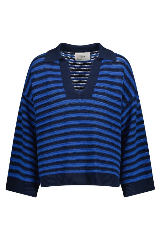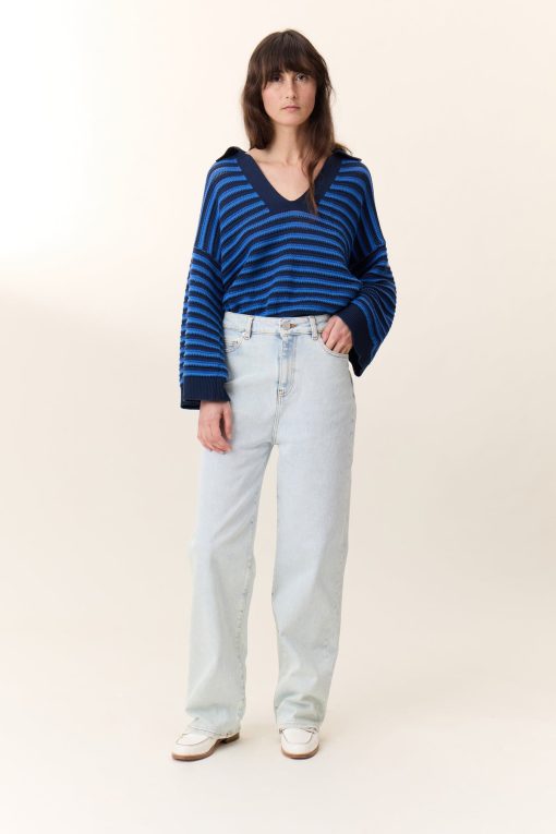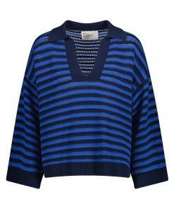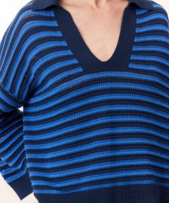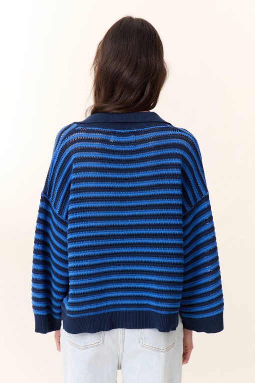 Le pull Moonia Strp allie parfaitement élégance et confort ! Avec son col polo et son imprimé marinière en maille ajourée, il apporte une allure sportive et intemporelle au vestiaire printanier de la femme Leon & Harper.