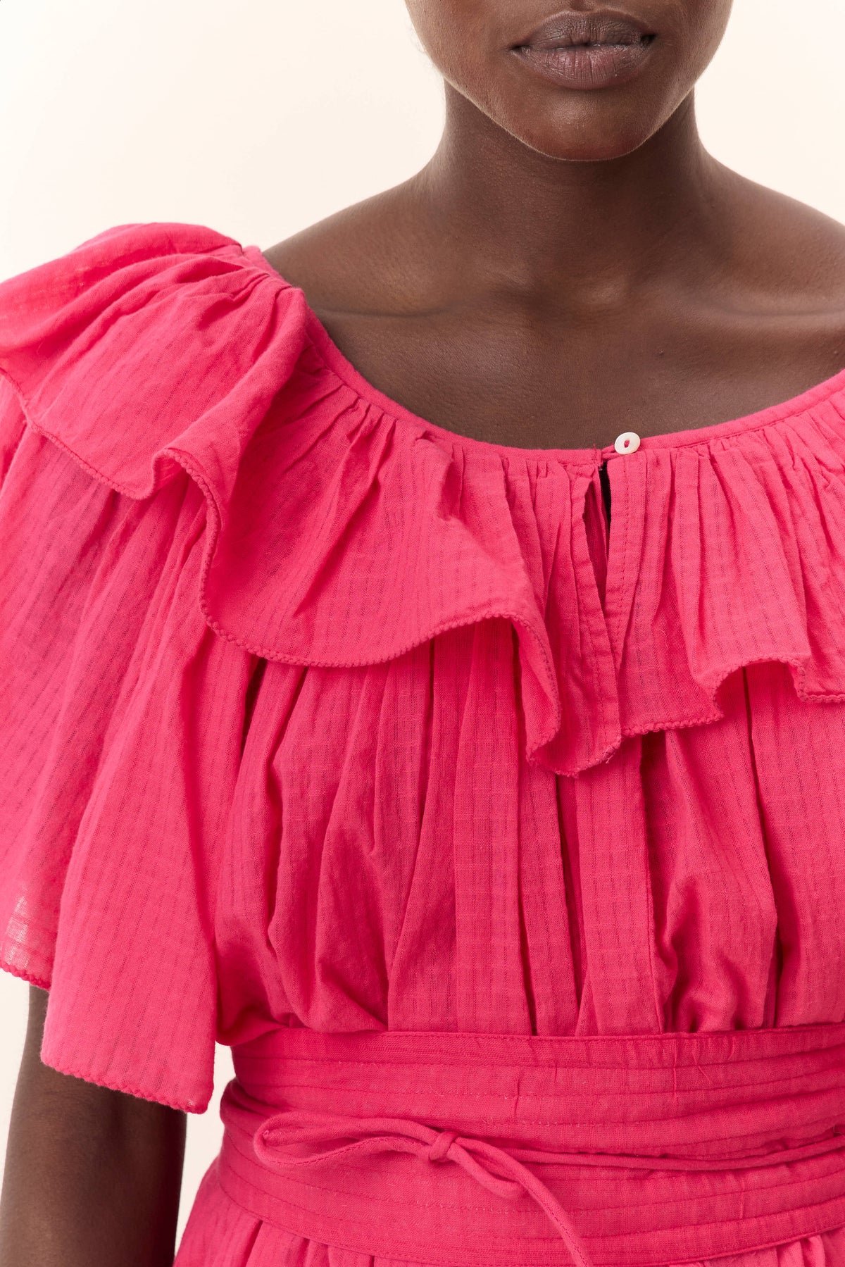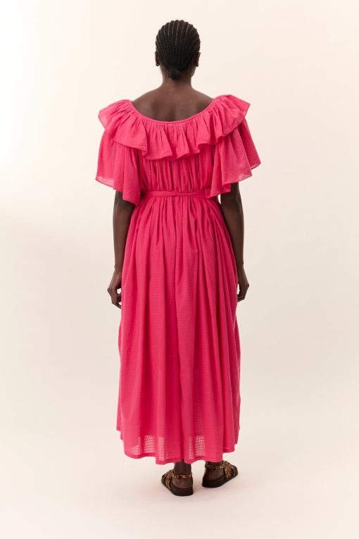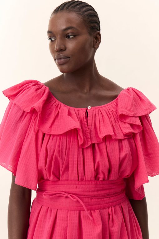 La robe Raeya Plain est élégante et aérienne, elle évoque une féminité bohème et romantique. Son col élastique à volants, qui permet un porté off-shoulder ou classique, et ses manches amples apportant un effet vaporeux. Idéale pour une soirée en bord de mer, un mariage champêtre ou une escapade estivale, cette robe allie confort et sophistication avec une allure envoûtante.
