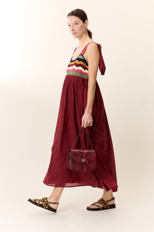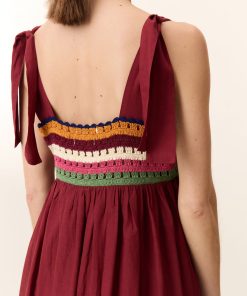 La robe Ricq Crochet se distingue par son jeux de matière avec son plastron en crochet fait main et son voile en coton. Ses jolies bretelles à nouer et son décolleté dégagé subliment la silhouette féminine de la femme Leon & Harper offrant une allure bohème et élégante.