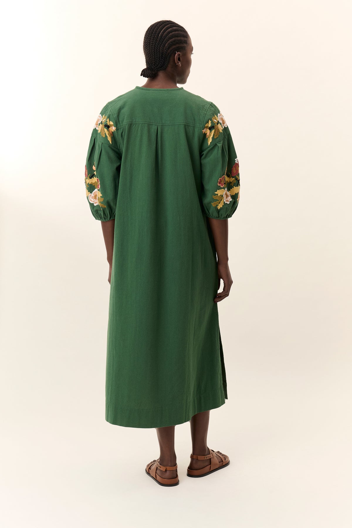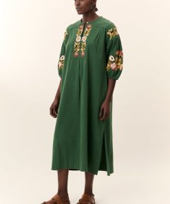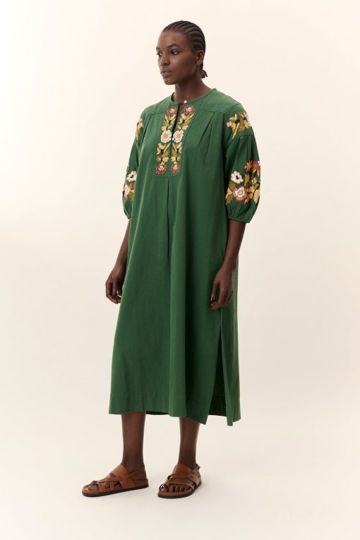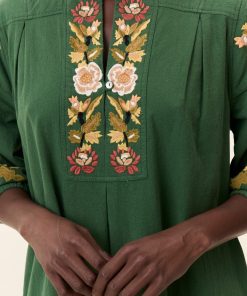 La robe Rudo Brd se distingue par son élégance bohème et ses détails brodés. Sa coupe droite légèrement évasée garantit un confort optimal tout en offrant une silhouette chic et décontractée. Les manches mi-longues légèrement bouffantes et ses broderies florales ajoutent une touche de sophistication artisanale. Parfaite pour une tenue casual raffinée, elle se marie aussi bien avec des sandales estivales que des bottines pour un look bohème en mi-saison.