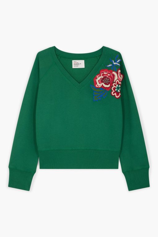 Le sweat Shavi Flowers est une pièce confortable et élégante, parfaite pour une allure décontractée avec une touche de sophistication. Son tissu doux et épais en fait un choix idéal pour les journées fraîches. Son col en V flatteur avec sa broderie florale colorée sur l’épaule, ajoutent une note raffinée. Avec sa coupe légèrement ample et ses finitions côtelées aux poignets et à la taille, il assure un look moderne et cosy, parfait à associer avec un jean ou une jupe pour une tenue casual-chic.