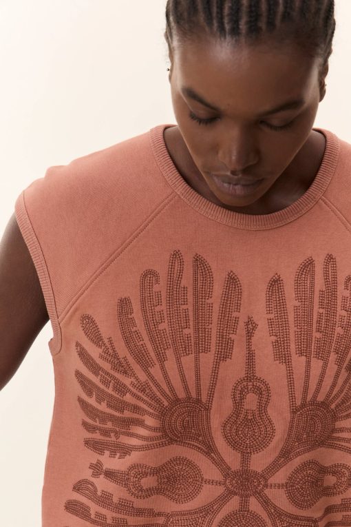 Le sweat Sirop Guitar est une pièce originale parfaite pour un look casual tendance. Son design unique met en avant un imprimé graphique de guitares, apportant une touche bohème et musicale. Sans manches, il permet à la femme Leon & Harper de jouer la superposition.