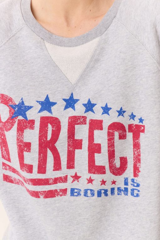 Le sweat-shirt Solo Perfect s’impose comme une pièce phare avec son imprimé « »Perfect is boring » », affirmant une philosophie décontractée et authentique de la femme Leon & Harper.