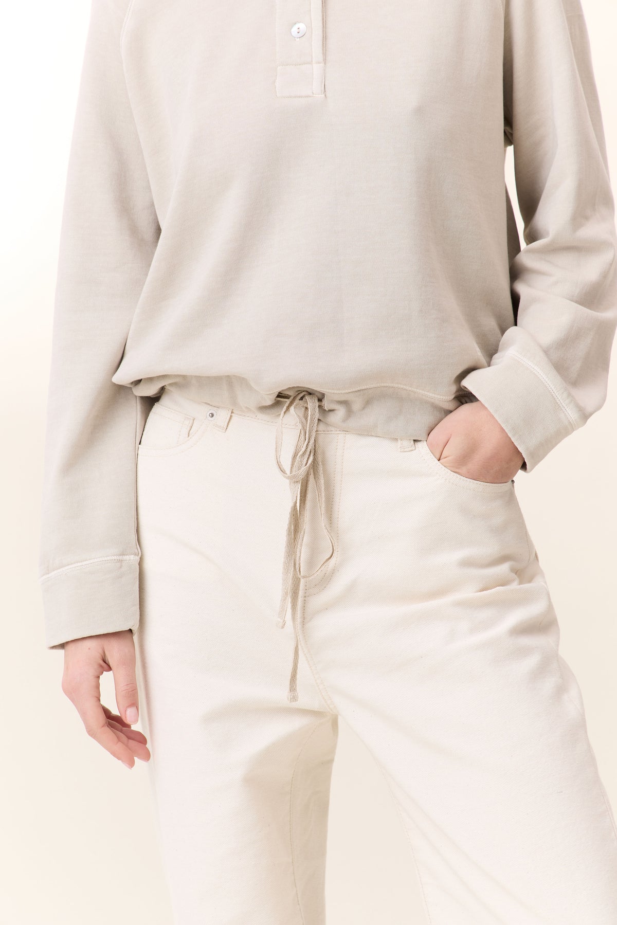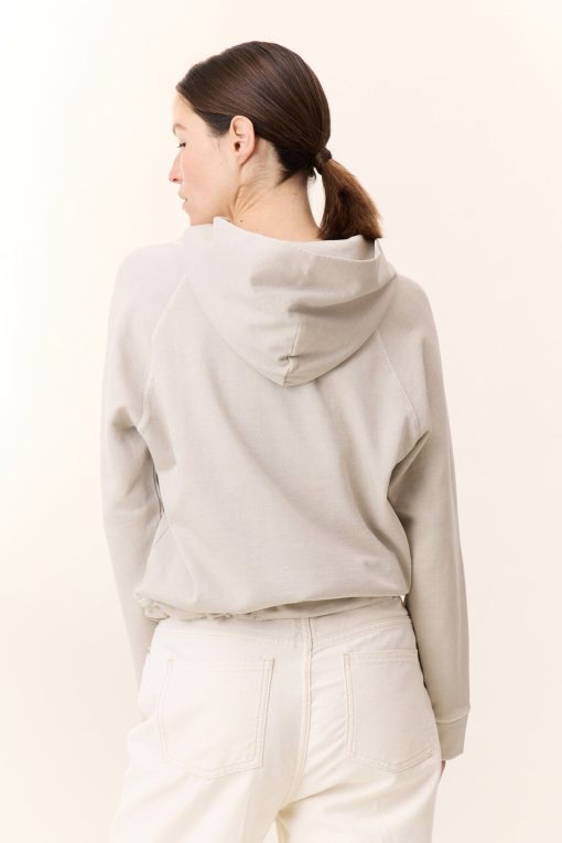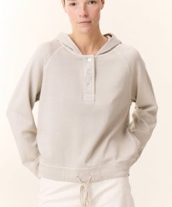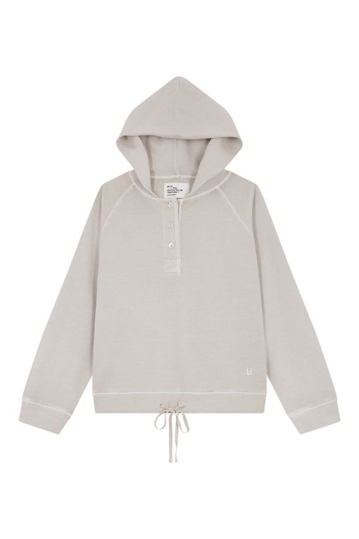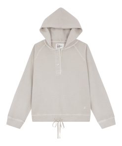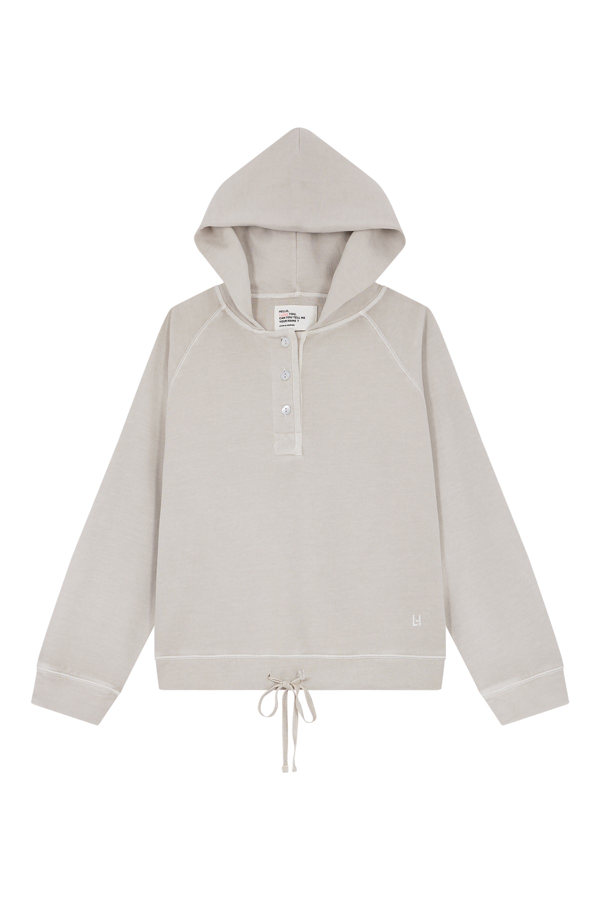 Le sweat Suki Plain est une pièce à la fois minimaliste et tendance. Son design épuré se distingue par une coupe légèrement cropped, une capuche et un boutonnage au col pour une touche originale. Le cordon ajustable à la taille permet de moduler le fit selon les envies, offrant un look casual ou plus structuré.