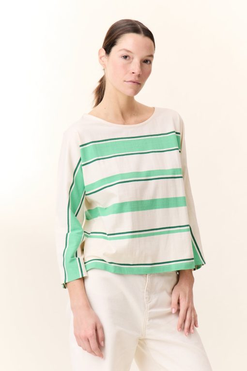 Le t-shirt Tigy Sea revisite la marinière classique. Avec ses larges rayures rehaussées de fines lignes noires, il offre un look à la fois intemporel et original. Parfait pour un style casual-chic, il peut se porter avec un jean, un pantalon fluide ou une jupe pour un look estival et sophistiqué.